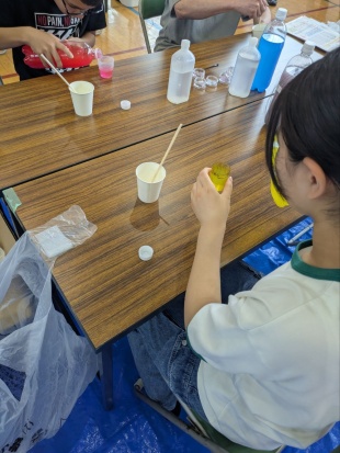 薬剤師会は、一般の方向けにお薬相談とスライム作りを行い、