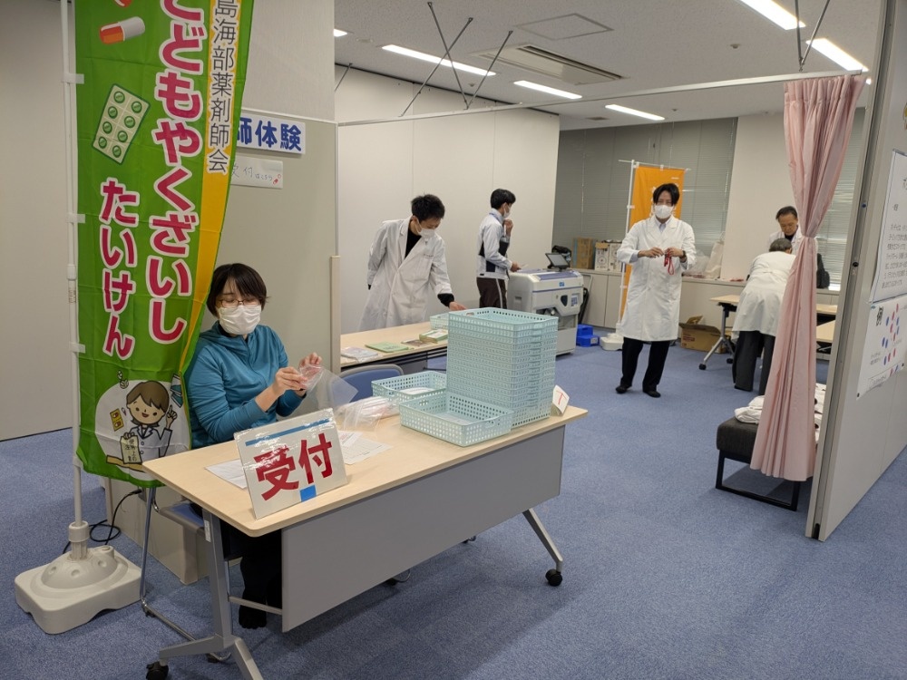 11月1日飛島村すこやかセンターにて健康福祉祭が開催され、薬剤師会は、子供の薬剤師体験でお薬の一包化 ・ お薬相談を行い、お陰様で盛況のうちに終えることができました。 ご協力いただいた先生方ありがとうございました。